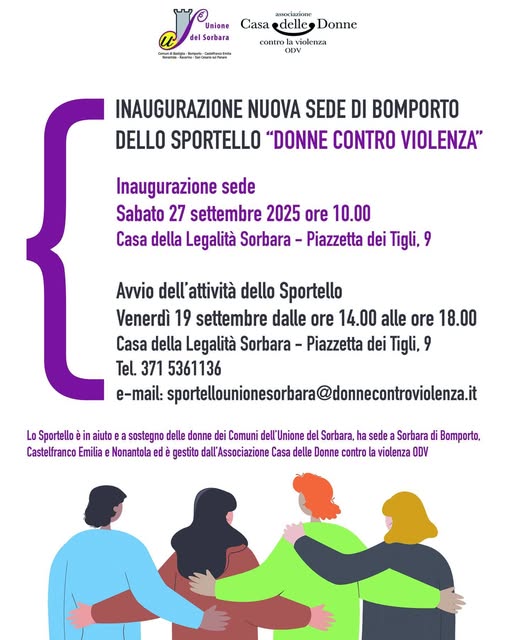Lo sportello è gestito dall’Associazione Casa delle Donne contro la Violenza – ODV di Modena. Contatti: 371 5361136 o sportellounionesorbara@donnecontroviolenza.it